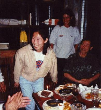 20 km World Cup Champion Zewen Li and 10 km champ Hongmaio Gao went nuts at the Ryan's Steak House all you can eat buffet and opted for a nap instead of an afternoon workout. 50 km god Yongshen Zhao showed up with his Provincial coach and Sonny--our translator for the Beijing World Cup trip.